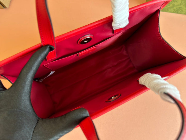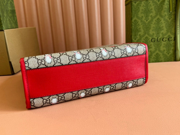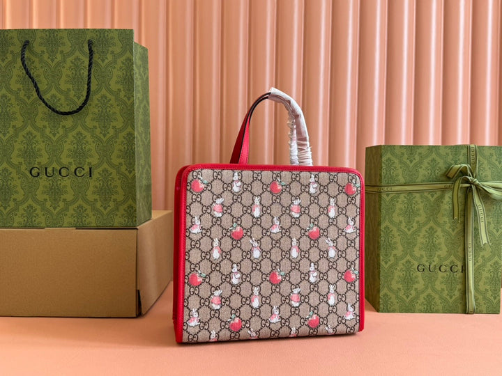CHILDREN'S PRINTED RABBIT TOTE BAG 28.5 IN BEIGE AND DARK BROWN GG CANVAS RED TRIM